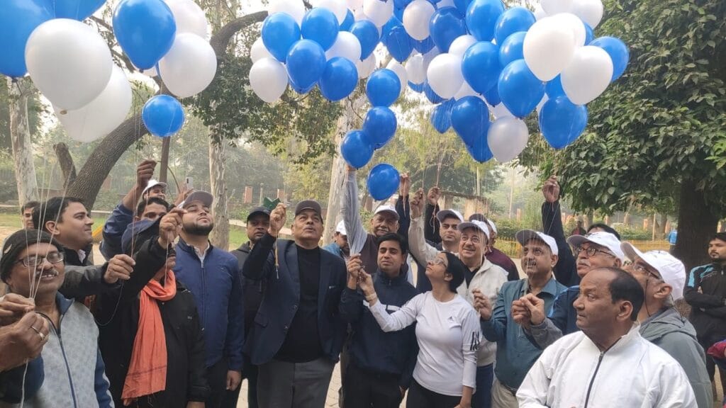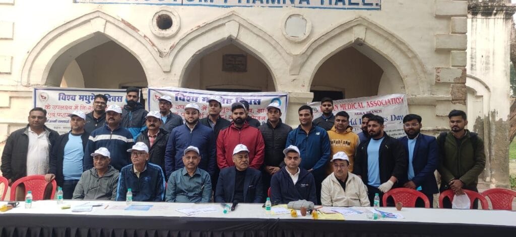 आगरा। विश्व मधुमेह दिवस पर आज कम्पनी गार्डन सुबह-सुबह एक अलग ही माहौल में नजर आया। आगरा डायबिटीज फोरम और आरएसएसडीआई (रिसर्च सोसायटी ऑफ स्टडी डायबिटीज ऑफ इंडिया) द्वारा आयोजित निशुल्क कैम्प में मॉर्निंग वॉक करने पहुंचे लोगों ने चाय–बिस्कुट के साथ डॉक्टरों से डायबिटीज पर खुलकर बातचीत की। करीब 190 लोगों ने अपनी शुगर, न्यूरोपैथी, कोलेस्ट्रोल और बीएमआई आदि की जांच कराई। कार्यक्रम की शुरुआत डॉक्टरों द्वारा सफेद और नीले गुब्बारे उड़ाकर की गई।