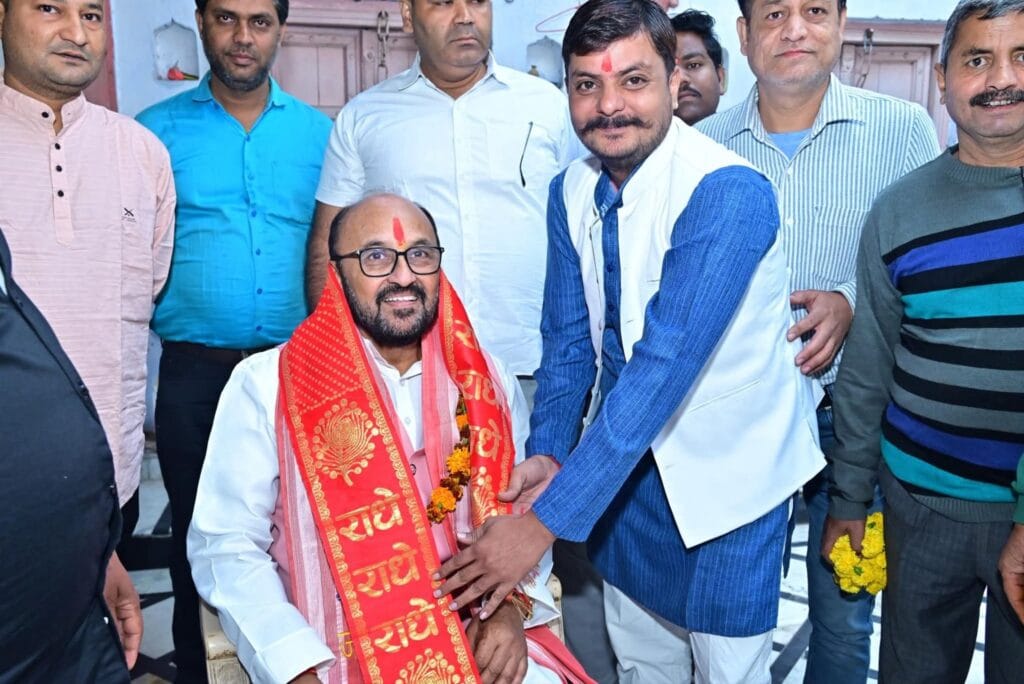 राजा मंडी स्थित छपेटी गली में स्थित लगभग 300 वर्ष पुराने ऐतिहासिक श्री नामदेव छतरिया छीपी समाज गोपाल जी मंदिर में मंगलवार को आगरा दक्षिण विधानसभा के विधायक एवं उत्तर प्रदेश सरकार में उच्च शिक्षा कैबिनेट मंत्री योगेंद्र उपाध्याय पहुंचे। मंत्री ने मंदिर में विधिवत पूजा-अर्चना कर प्रदेश की सुख-समृद्धि की कामना की।