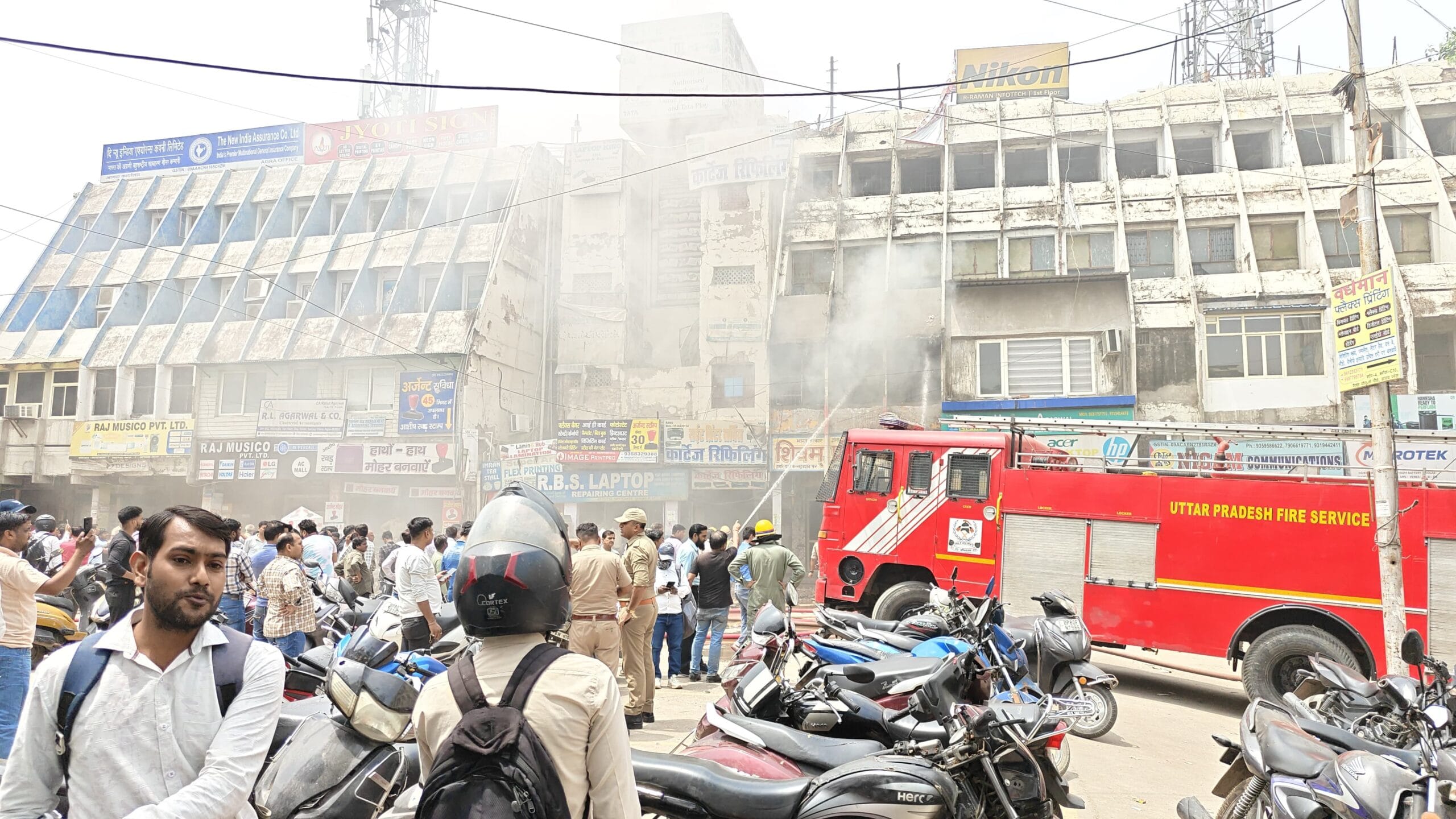 संजय प्लेस स्थित स्काई टावर की पहली मंजिल पर कंप्यूटर-लैपटॉप का गोदाम है। शॉर्ट सर्किट से आग लगने पर